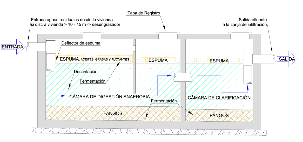 Una fosa séptica está diseñada para permitir dos procesos: